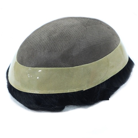Atacado mono fino com revestimento poly, no perímetro indiana remy cabelo humano homens toupee cabelo peças substituição syem